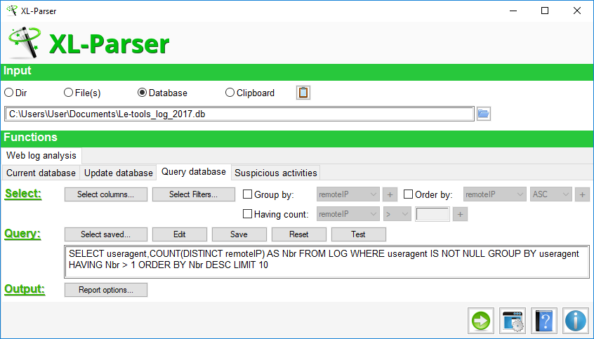 Web log analysis: One specialty of XL-Parser is web log analysis. When you analyse web logs,